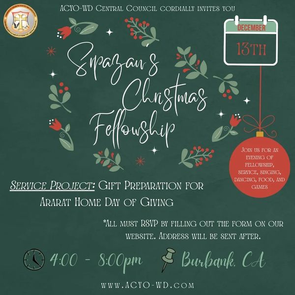 ✨ The ACYO-WD invites all ACYO members to our annual Srpazan’s Christmas Fellowship! 🎄❤️